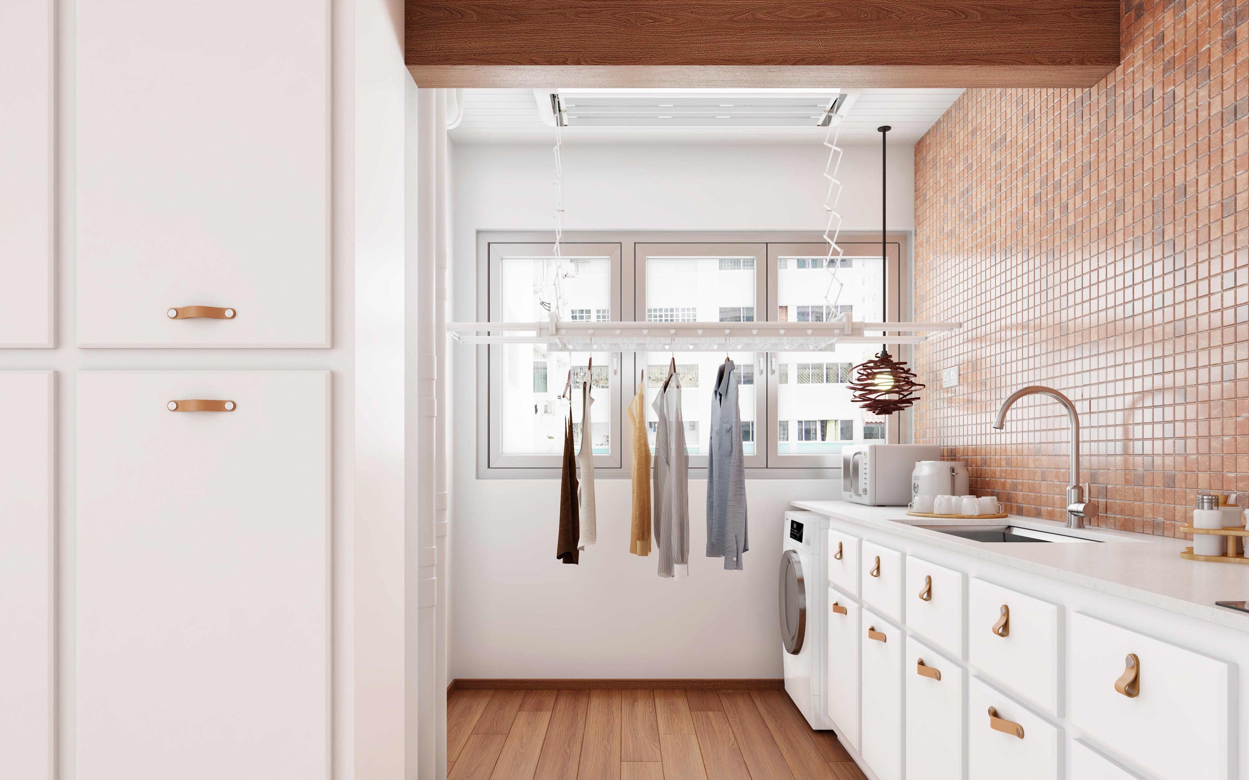 All Steigen indoor laundry drying racks have a load-cell sensor to optimise the electrical output. Based on the laundry load distribution on the system, self-calibration will be triggered when lowering and retracting the system for energy efficiency.